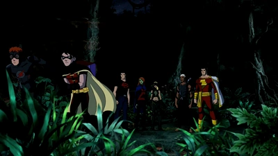 As they land, Robin and Artemis scout the perimeter. Aqualad orders them to switch to stealth mode and wants to go over the mission's parameters. However, Robin and Kid Flash are not amenable to cooperate, and after blaming Aqualad again for withholding vital information, run off on their own. Superboy tries to lead Miss Martian away, but his smothering attitude doesn't agree with her, and he explains he only wanted to protect her. Artemis intervenes and declares they don't need their protection—at least not the kind that Aqualad had tried to purvey by keeping secrets from them. So, the two girls set off together on their own too. Superboy scolds Aqualad for not deterring them, as he is their leader, but before Aqualad can retort, Superboy leaps away. Captain Marvel is perplexed by the whole situation and notes that Aqualad didn't lay down a plan. Disheartened, Aqualad walks into the jungle and Marvel follows behind. Meanwhile, a growling figure is lurking in the bushes.