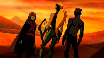 Robin, Kid Flash and Artemis drag Aqualad across the desert to safety, but struggle to elude more soldiers. Underarmed and worn out to fight them head on, Robin ducks out. Meanwhile, Kid Flash asks Artemis to explain that story about her father wanting her to kill him. She claims that she got confused with the plot of a ninja movie she had seen before. The two start bickering and Robin returns to reveal he used his communicator to lure the soldiers away. As they are stymied by explosives, the heroes pursue their escape.