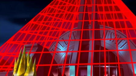 L-Ron announces Despero's arrival as he activates a force field around the Hall of Justice.
