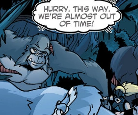 Malavar, Djuba and Solovar, as well as a number of Shadow guards, answered the Brain's call for reinforcements against the Team. The gorillas sided with the Team. Solovar ordered Djuba and Malavar to attack the Shadows. After the Brain activated the base's self-destruct, Malavar evacuated with the Team and the other gorillas to the troop's safe haven.[2]