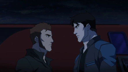 Brion demands the location of the League. Dick relents, telling him it's on Infinity Island, but warns him they don't know for sure if Tara is there. Brion insists they go, but Dick says they will not face Ra's al Ghul and the League without more proof or a plan. Brion reluctantly agrees to wait and goes inside the Bio-Ship with Halo and Forager.