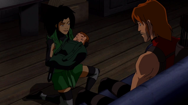 Roy returns to his apartment, where he breaks down on the couch. Cheshire confronts him about his physique, but Red Arrow rebuffs her concerns, as she lost the "right" to criticize him when she left him to return to a life of crime. Cheshire disagrees, stating it was only a side benefit for her actual reason: his search for Speedy was wearing him down. It was detrimental to him, her, their relationship, and their daughter who she reveals to him. Roy is shocked to learn he's a father. Cheshire introduces him to Lian Nguyen-Harper, and gives her to Roy to hold. She explains she called in all her chips, and has found a lead on Speedy they could pursue together.