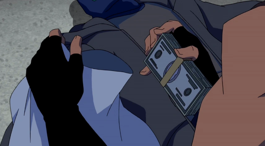 A thief is fleeing a store after robbing it. Before he can get far, he is tripped up by an arrow, which releases knockout gas. Red Arrow arrives on the scene, and proceeds to collect the stolen money. The manager, having seen everything, offers him a reward. Red Arrow claims that it isn't necessary, but does take a stack of bills for himself. The manager thanks him, not knowing he has been cheated. Unknown to either of them, Green Arrow is watching from a distance. He contacts someone, telling them the situation is worse than expected.