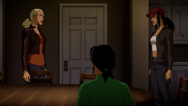 At the Vault, Tigress has the women put in separate interrogation rooms. Cassandra claims that the Shadows were after her for her betrayal. Onyx claims that the attack was a ploy to help Cassandra sell her story. In the main room, Tigress, Red Arrow, Arsenal, and Arrowette meet with Terra, Spoiler, and Orphan, asking for their advice in fishing out the real mole. Orphan advises not to trust either of them. Red Arrow agrees. But Tigress holds out that there may be hope for both Onyx and Cassandra.