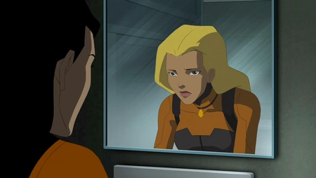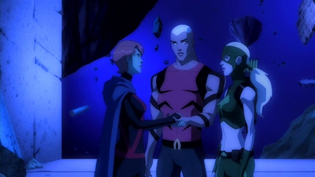 - Kaldur's broken memories are represented by Atlantis in ruins. M'gann has to remind Artemis the two are not really underwater, but then the two are attacked by Tula.