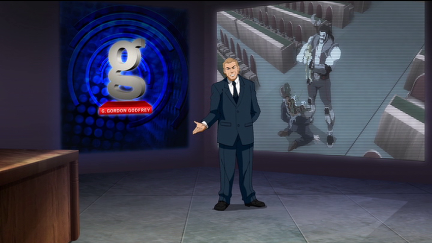 The G. Gordon Godfrey Show is a current affairs opinion and interview program hosted by G. Gordon Godfrey, broadcast on GBS.[1] It was also available on Goode Goggles.[2] It is primarily conducted from a studio in New York City, but sometimes features on location reporting from G. Gordon himself,[3] or others.[1] The show's airtime has varied, but as of September 2020 it airs weeknights at 7pm Eastern.[4] Godfrey is in fact an associate of the Light and Darkseid and uses the show to support their ends.[5][6]