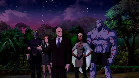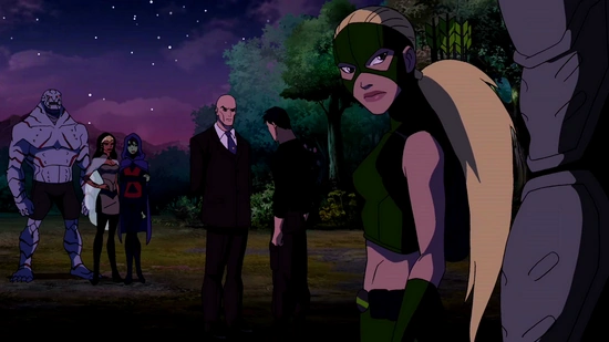 When Superboy takes Sphere to Santa Prisca, he finds Luthor waiting for them along with his other cohorts Sportsmaster, Blockbuster, and Queen Bee. Bane is letting them use the island in return for favors. Superboy then realizes that the Injustice League was a mere distraction and that Luthor and Queen Bee were behind all the criminal activity, which Luthor admits. Artemis and Cheshire arrive by helicopter, Artemis explains that no one trusted her and she's now where she belongs. Miss Martian arrives in the Bio-Ship and is surprised to see Superboy and Artemis. Queen Bee tells her to keep her promise, and Superboy agrees to help in return for more shields. Luthor realizes that he's lying and gives the command phrase "Red sun" to render him helpless. Artemis asks what they want them to do and Sportsmaster tells her to come with him.