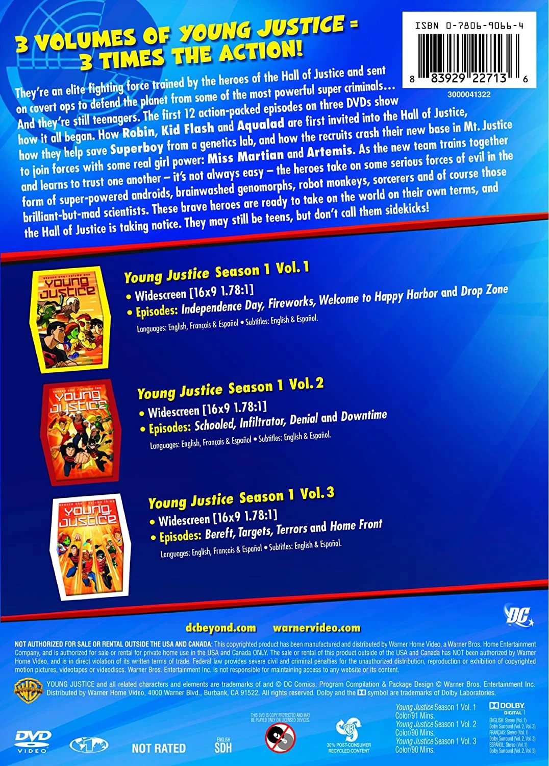 Young Justice: 3-Pack Fun is a DVD set that contains the first twelve episodes of season one of Young Justice. The DVD hit the shelves on April 17, 2012.