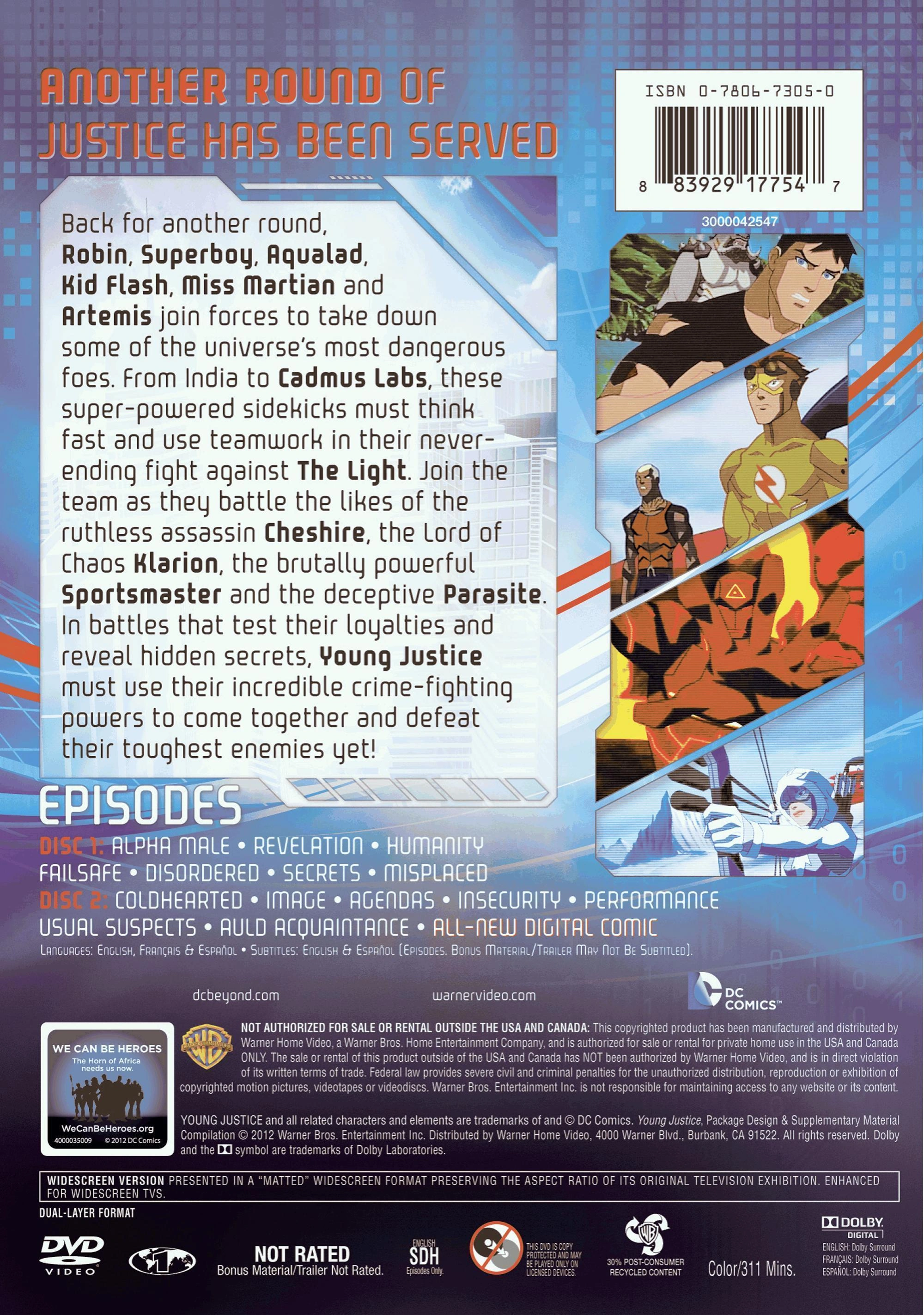 Young Justice: Dangerous Secrets, also known as Young Justice: Season One, Part Two, is a two-disk DVD set that contains the last fourteen episodes of season one of Young Justice. It hit the shelves on July 31, 2012.