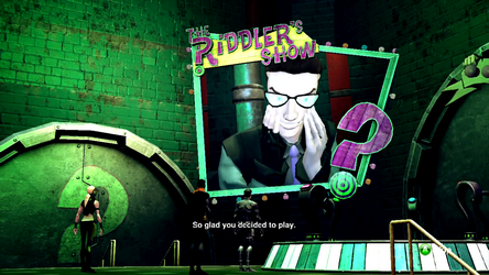They wake up again in Haly's. Nightwing quickly rushes to free Dr. Sandsmark. After checking she is okay, he tells her that her messages were genius. She was surprised someone was listening—she had felt lost. She asks who they are, but Nightwing can only answer briefly: the good guys. Then he remembers Psimon. They find him behind a curtain, comatose in a wheelchair. Nightwing surmises he was being controlled somehow. Riddler pipes up over speakers again to confirm the theory. After Nightwing demands he gives himself up, Riddler reminds him he still has the relic, hinting that he has it at an "amusing abode." Nightwing easily solves the riddle and, after calling for back-up to escort Dr. Sandsmark to safety, heads off with Alpha to the funhouse.